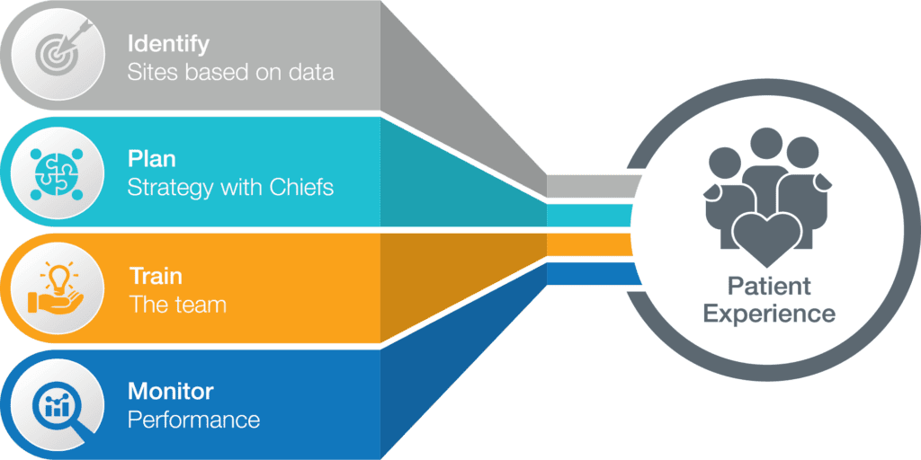 - Aligns with facility patient experience surveys that are tied to payor performance incentives